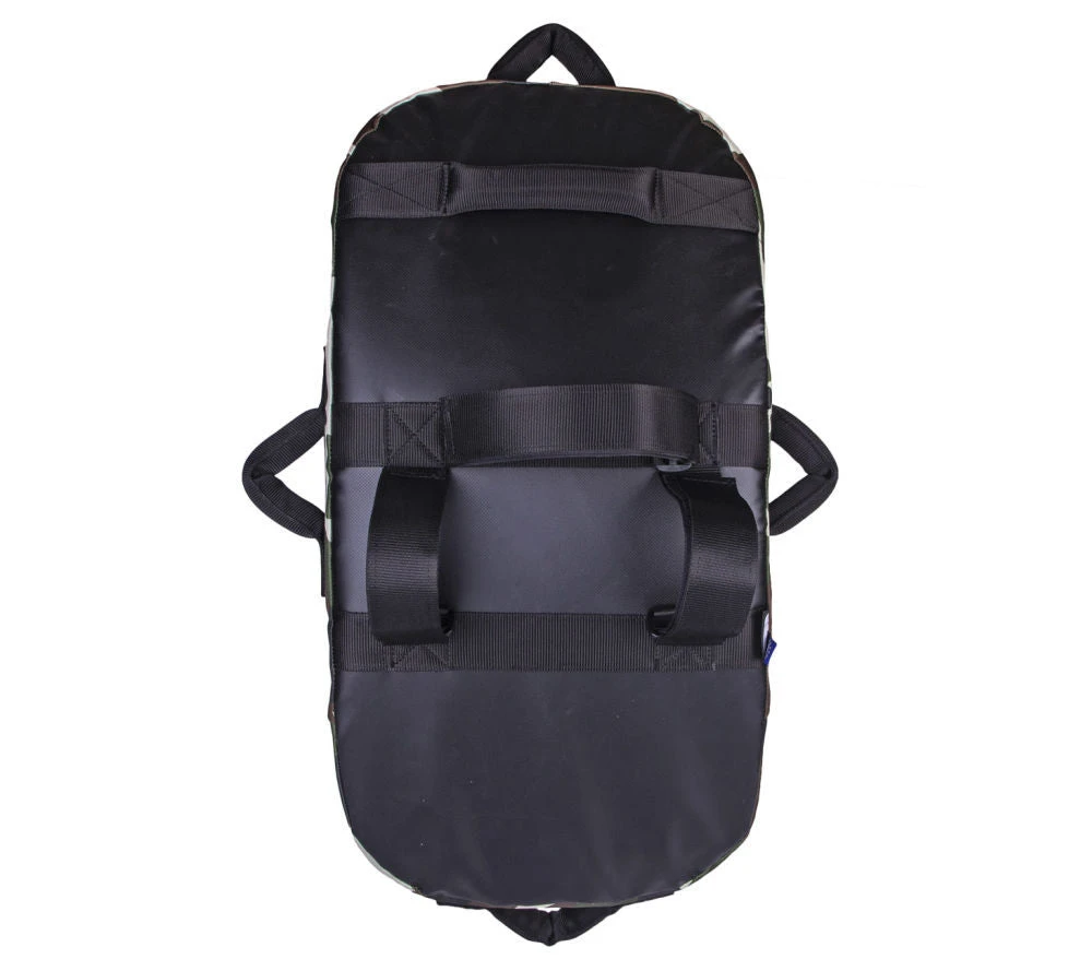 Rugged and durable punch, kick and strike curved shield is ideal for all your MMA, Muay Thai and combat training demands. Super shock absorbing foam welcomes every offensive blow and strike and screams for more. Slightly contoured design is ideal for athlete and trainer. Multi-position nylon webbing and padded handles on back, top, sides and bottom make for comfortable and custom training options.