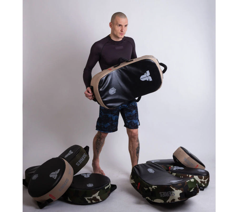 Rugged and durable punch, kick and strike curved shield is ideal for all your MMA, Muay Thai and combat training demands. Super shock absorbing foam welcomes every offensive blow and strike and screams for more. Slightly contoured design is ideal for athlete and trainer. Multi-position nylon webbing and padded handles on back, top, sides and bottom make for comfortable and custom training options.