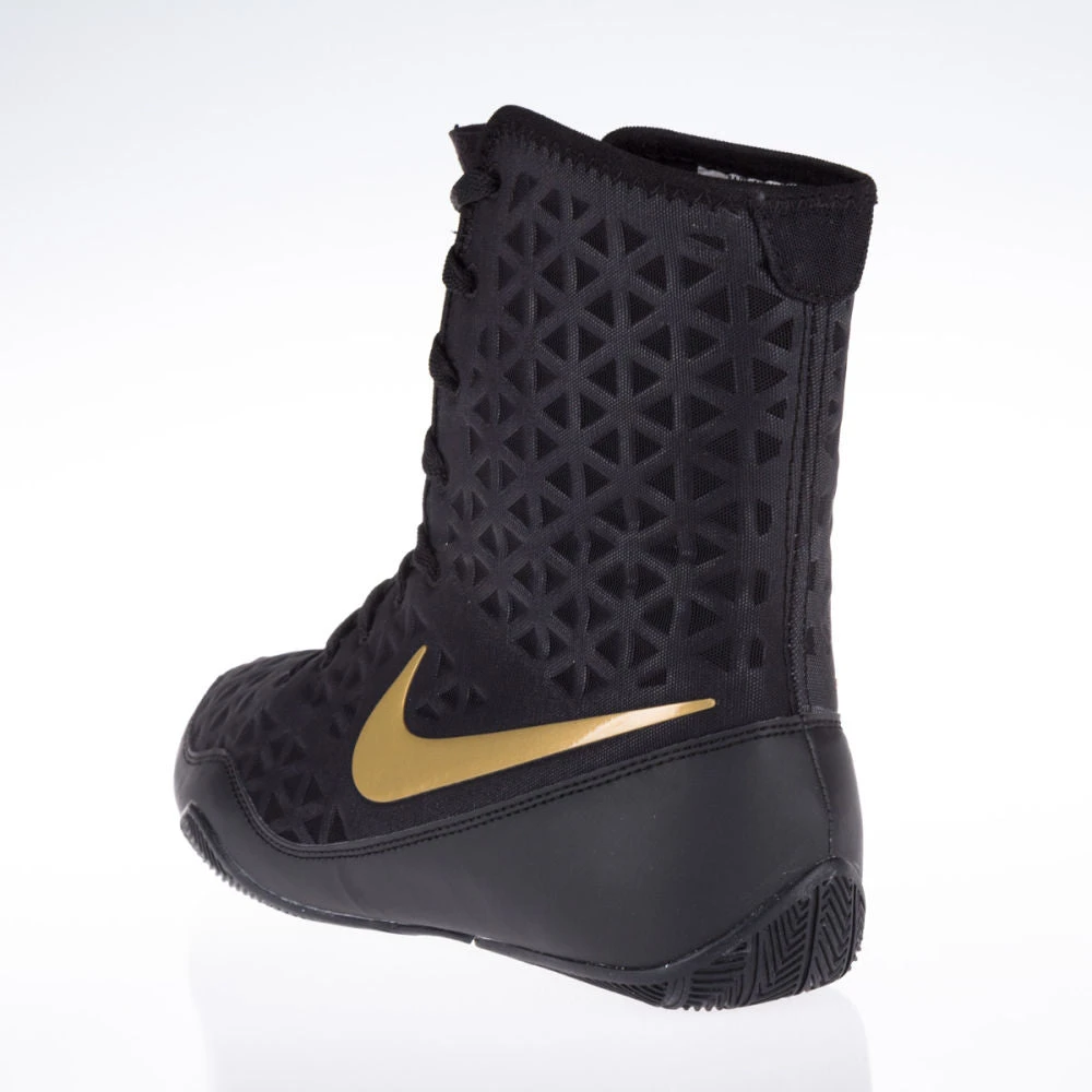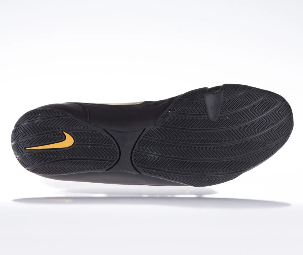 Nike KO Boxing Shoe – black/gold– TRAIN HARD. HIT HARDER – A powerful punch starts with solid footwear. Because of this, we improved the shoe’s feel for the floor and traction with reengineered gum rubber soles that are thinner and more sticky on the bottom and with sliding surface for pivot points.