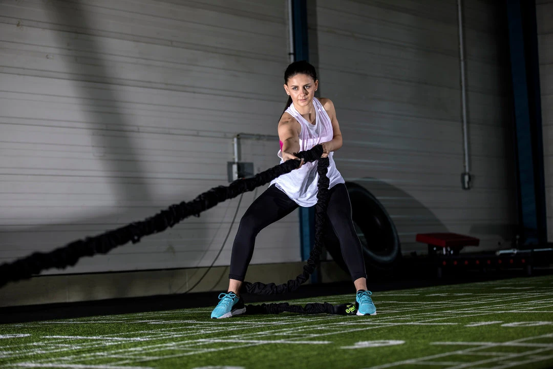 - Full body training (sprints, waving, slamming, jumps, squats, athletic drills, push and pull exercises, rotations, lower body exercises, …)