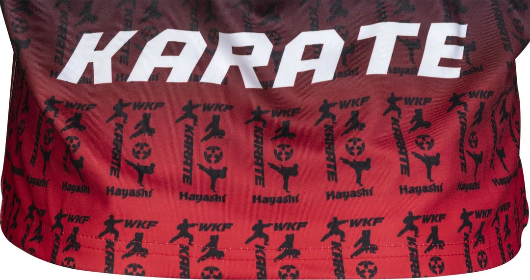 Super casual and comfortable and equipped with a lot of sportiness, this is how the “WKF Gradient” training jacket by Hayashi presents itself. The soft zip jacket with hood is made of a high-quality interlock jersey and has a high level of warmth. Despite its figure-hugging cut, the “Gradient” is a real movement artist. The raglan sleeves and narrow cuffs at the ends ensure maximum comfort. Two side zip pockets serve as a safe storage place for important little things, and thanks to the hood in the “Gradient” training jacket, the wind outside can blow hard around your ears. Hayashi’s design relies on the typical elements and a color gradient of the main components, black and red. Large print elements on the back give your passion for karate the necessary expression.