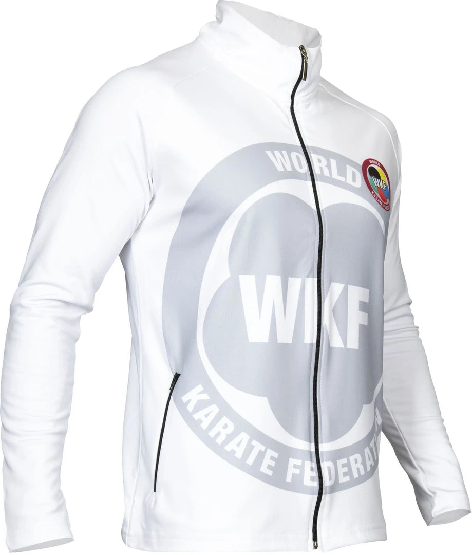 Super casual and comfortable and equipped with a lot of sportiness, this is how the “WKF Gradient” training jacket by Hayashi presents itself. The soft zip jacket with hood is made of a high-quality interlock jersey and has a high level of warmth. Despite its figure-hugging cut, the “Gradient” is a real movement artist. The raglan sleeves and narrow cuffs at the ends ensure maximum comfort. Two side zip pockets serve as a safe storage place for important little things, and thanks to the hood in the “Gradient” training jacket, the wind outside can blow hard around your ears. Hayashi’s design relies on the typical elements and a color gradient of the main components, black and red. Large print elements on the back give your passion for karate the necessary expression.
