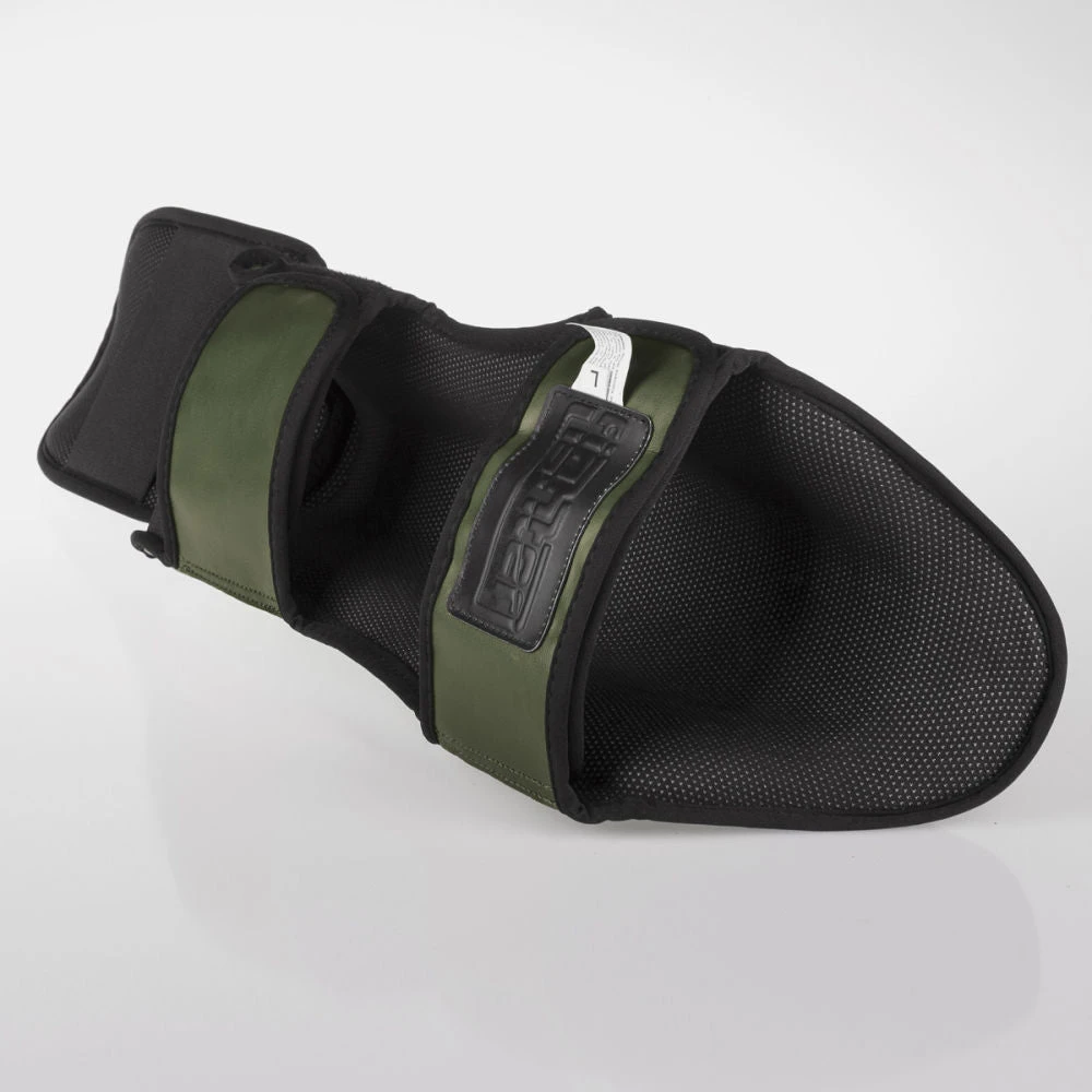 The Fighter Shin Instep Guards have ergonomic shape for an improved fit with less shifting or rotating. Sleek design yields the highest capacity for speed without sacrificing protection. Double layer of padding directly over the shin for additional protection. Lined with the slip resistant SRM material with quick dry function.