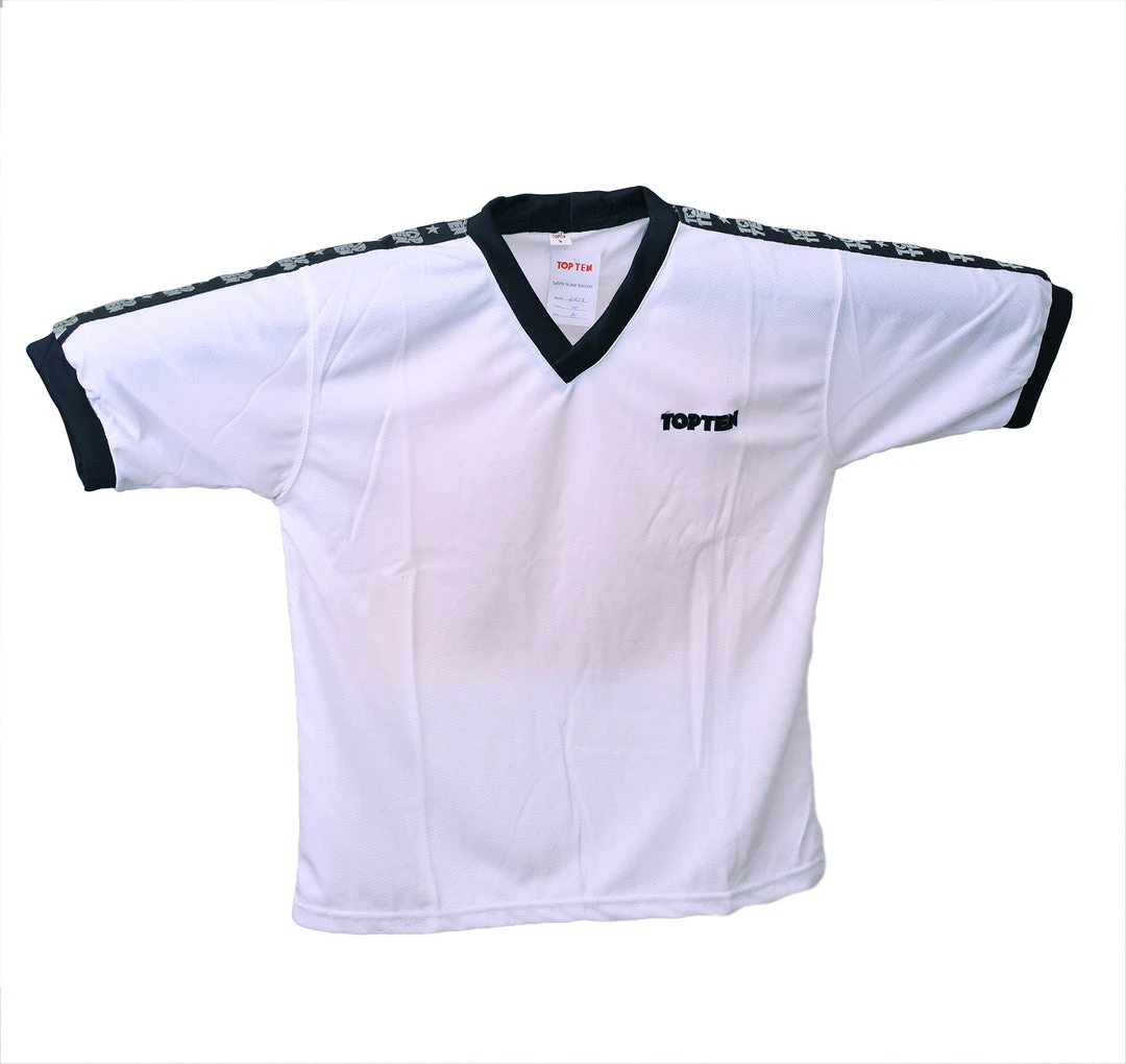 Made of a light, comfortable material. Features TOP TEN arm stripes. Perfect for the light and semi contact competitor, but also great for any other fitness or jogging workout. Wide cut.