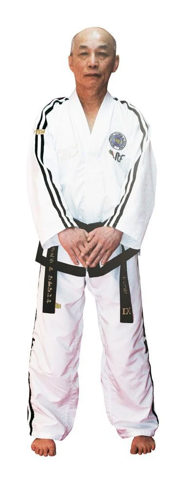 With the Grandmaster Dobok Top Ten achieved a masterpiece for the award of special sporting merit. The 7th to 9th Dan is currently the highest level of active Taekwon-Do athletes and can only be reached through years of training. The Grandmaster suit underscores your skills with its outstanding design and unique functionality. While the classic cut refers to tradition, the split black contrast stripeon the sleeve and shoulder seams as well as the side seams stand out visually striking. The lower edge of the jacket is also lined with a high-quality black stripe. The Taekwon-Do suit is made of 100% functional material and therefore convinces with its lightness. Great freedom of movement is provided by the specially designed crotch portion of the trousers, which promotes dynamic movement.