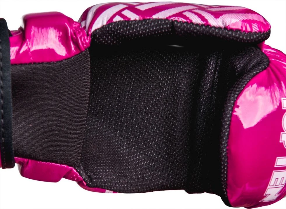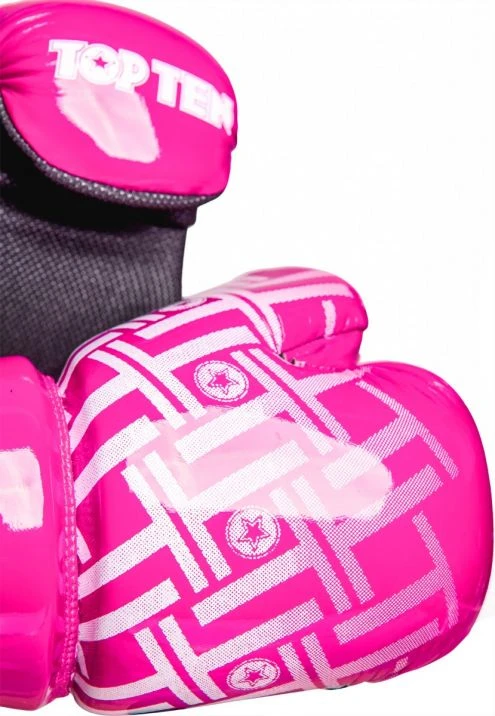 With the Pointfighter “Glossy Block PRISM” from TOP TEN, you can complement your look from the popular PRISM series. The proven advantages of our point fighters are also used in the “Glossy Block PRISM.” An approx. 2 cm wide protective ring in the wrist area provides more stability and increased safety. The padding is made of compressed PPS foam for a flowing impulse pick-up over the entire surface. The sturdy cover made of synthetic leather is extremely resistant, and all prints are abrasion-resistant, so that your “Glossy Block PRISM” Pointfighters impress with their long-lasting shine. A sewn-on, closed thumb, an ergonomic grip line, and a strong hook and loop fastening system round off the Pointfighter’s safety package.