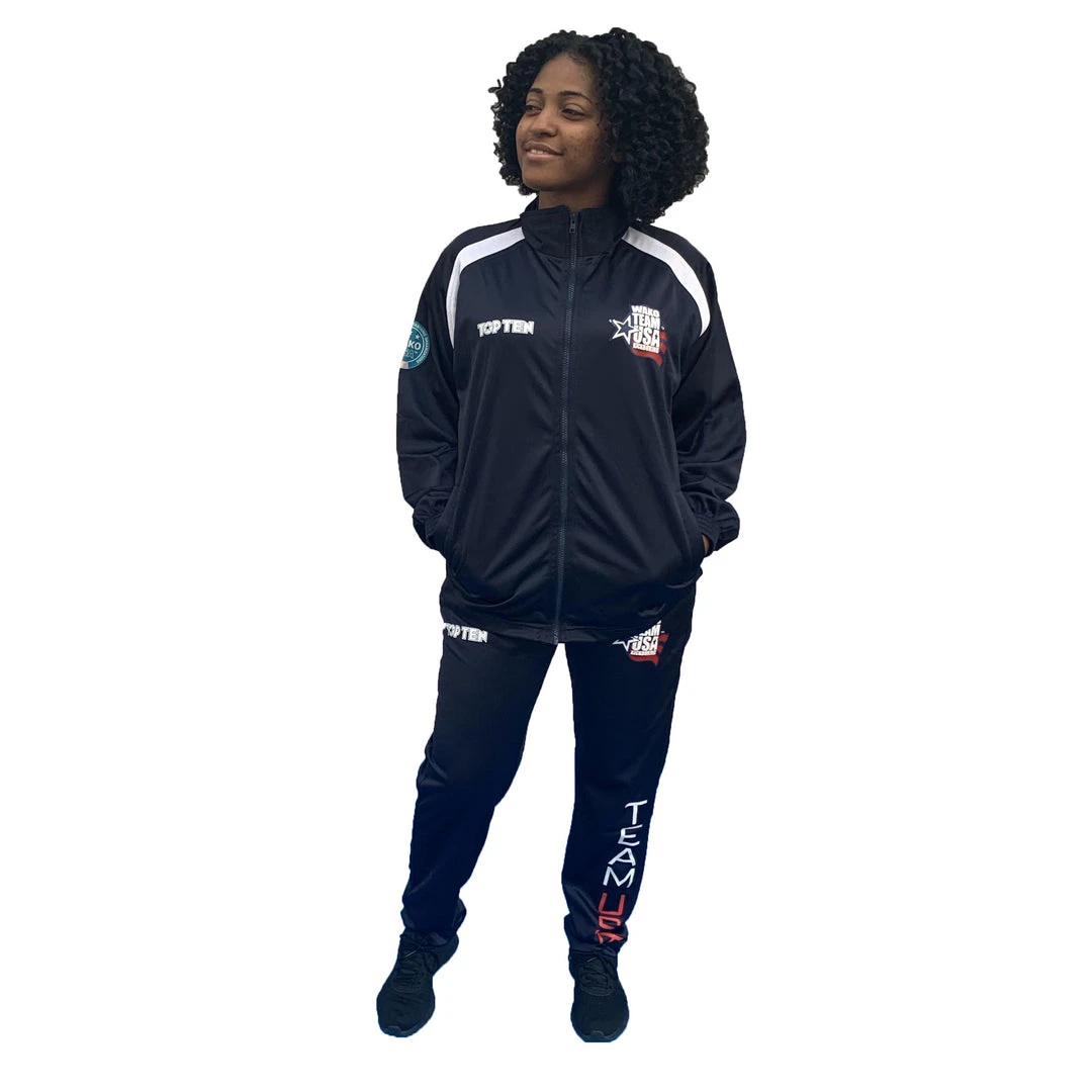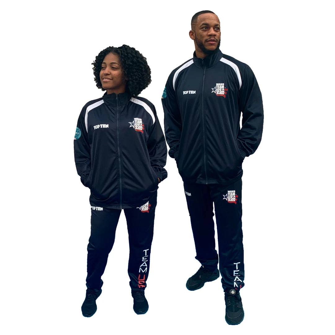 Top Ten training or casual wear warm-up suits. Breathable and comfortable microfiber design of 100% tricot polyester. Very functional as a warm-up and stylish as casual wear.